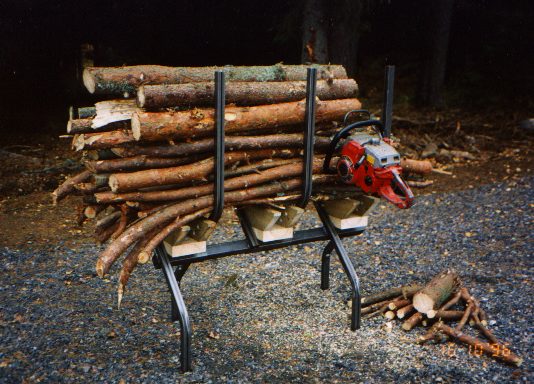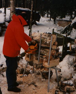 Vid sågning av veden i denna kapbock kapar man inte grenarna en och en, utan man lastar den full 50 st eller så. När man sedan sågar med sin motorsåg så hoppar grenarna inte omkring, utan ligger snällt kvar i klykorna. I bästa fall kan man till och med fånga upp den sågade veden i buntar. Trä U-et gör att man på ett bra sätt stoppar upp sågningen utan att skada varken såg eller kapbock. Bilden till höger visar en av prototyperna, bilden nederst visar den slutliga "massproducerade" typen. Sten annonserade i tidningen Land och skickade ut reklambrev, och försökte hitta återförsäljare t ex skogsbruksaffärer, men med ett pris som bara täckte tillverkningskostnaderna blev det inget drag i försäljningen, så det var bara att lägga ner produkten. |