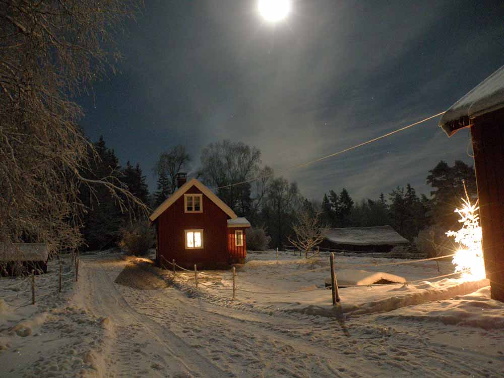 Med månljus, julgran och slålarna ur fönstren som enda belysning så får jag här